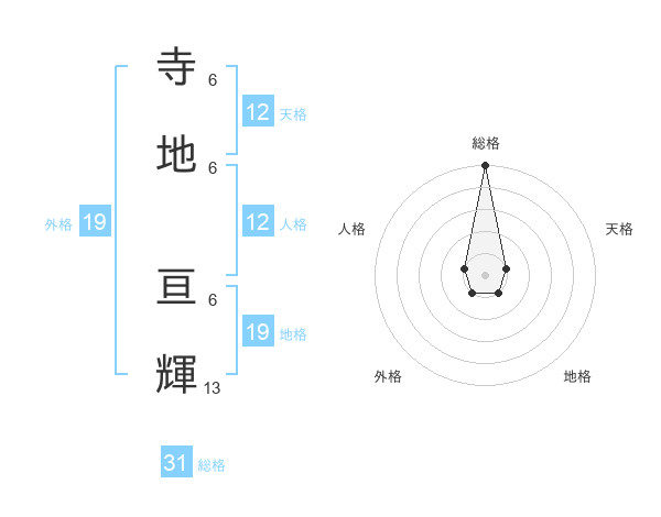 寺地 亘輝さんを姓名の画数から五運を鑑定