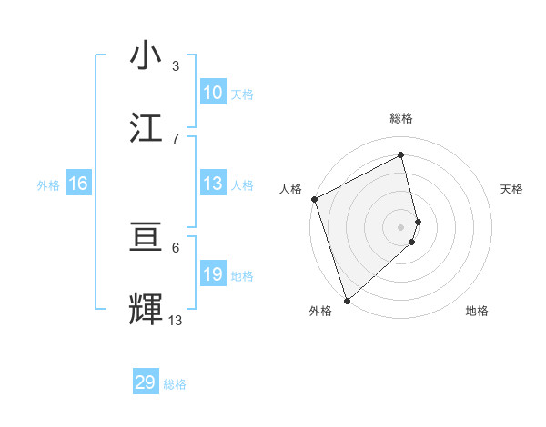 小江 亘輝さんを姓名の画数から五運を鑑定