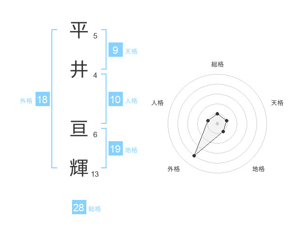 平井 亘輝さんの総格は28画の1点!