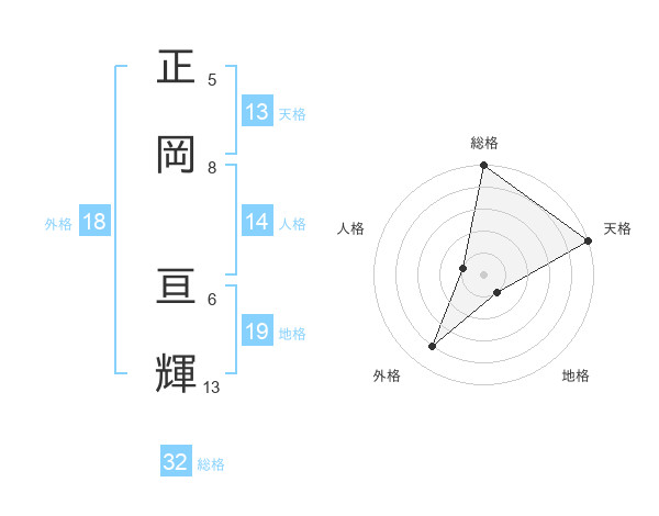 正岡 亘輝さんを姓名の画数から五運を鑑定