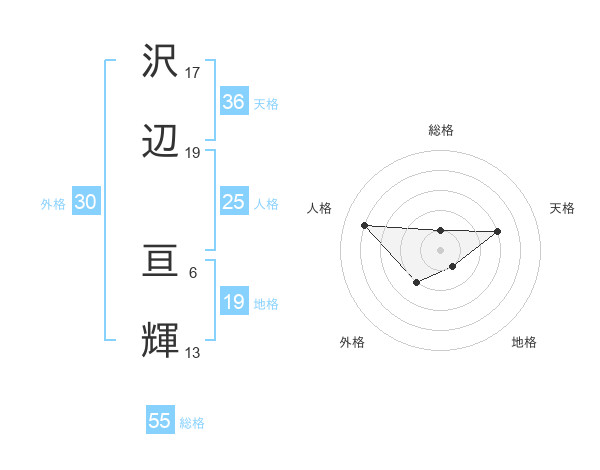 沢辺 亘輝さんの天格は36画の3点!