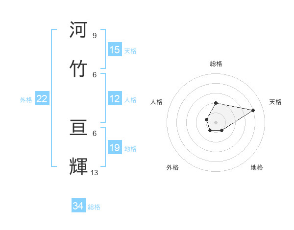 河竹 亘輝さんの総格は34画の2点!
