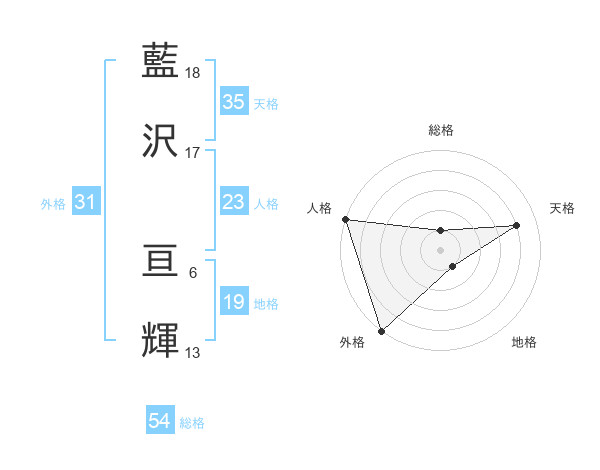 藍沢 亘輝さんの天格は35画の4点!