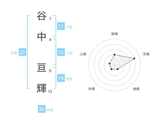 谷中 亘輝さんの天格は11画の4点!