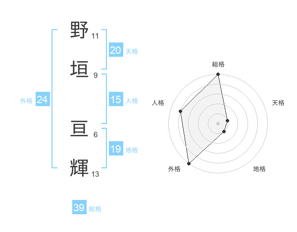 野垣 亘輝さんを姓名の画数から五運を鑑定