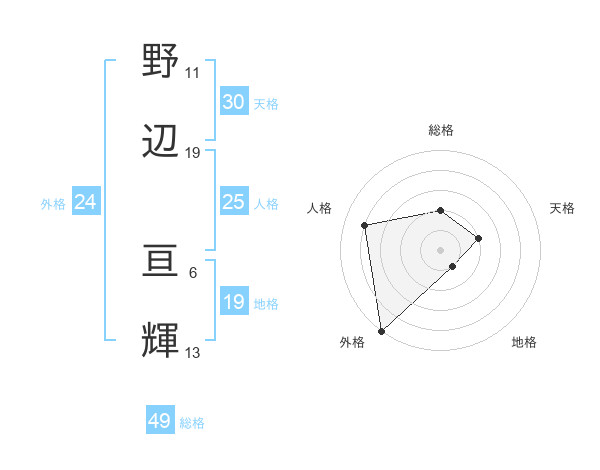 野辺 亘輝さんを姓名の画数から五運を鑑定