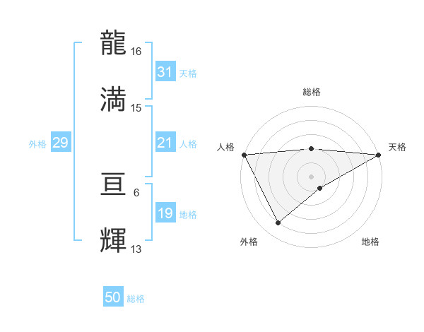 龍満 亘輝さんの天格は31画の5点!