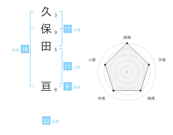 久保田 亘さんの天格は17画の4点!