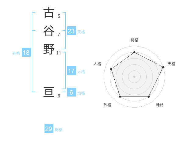 古谷野 亘さんを姓名の画数から五運を鑑定