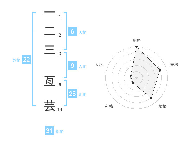 一二三 亙芸さんを姓名の画数から五運を鑑定