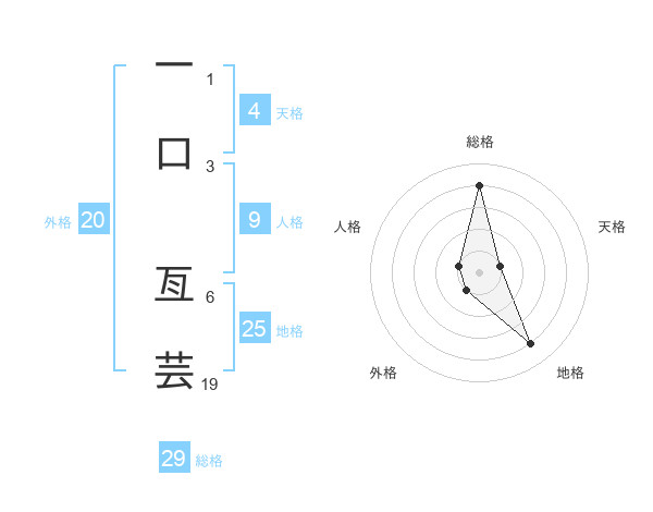 一口 亙芸さんの総格は29画の4点!
