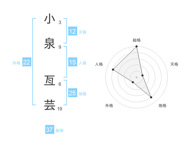 小泉 亙芸さんの総格は37画の5点!