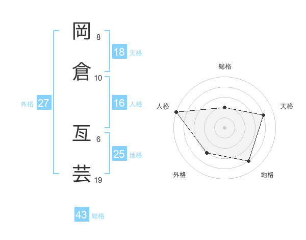 岡倉 亙芸さんを姓名の画数から五運を鑑定