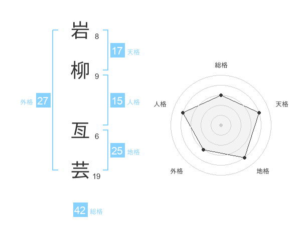 岩柳 亙芸さんの総格は42画の3点!