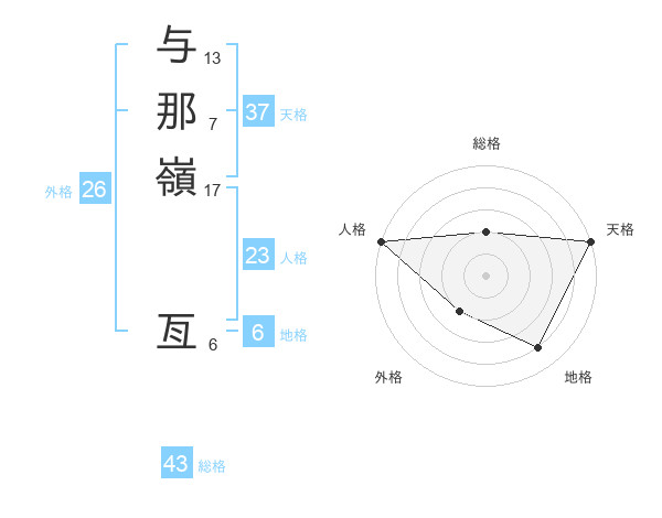 与那嶺 亙さんを姓名の画数から五運を鑑定