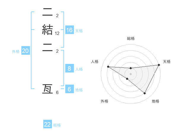 二結二 亙さんの外格は20画の1点!