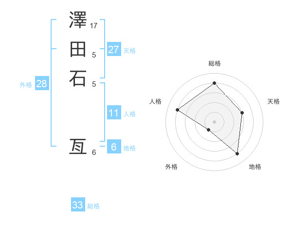 澤田石 亙さんの総格は33画の4点!