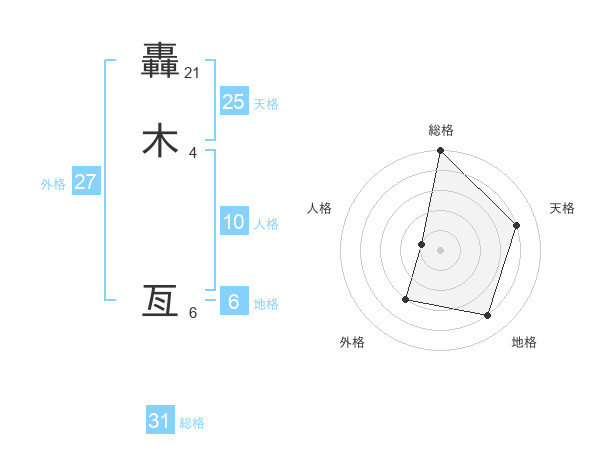 轟木 亙さんの総格は31画の5点!