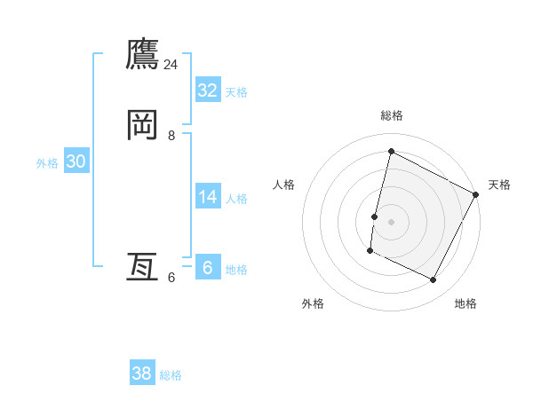 鷹岡 亙さんの総格は38画の4点!