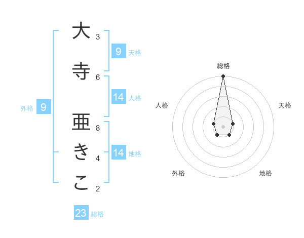 大寺 亜きこさんを姓名の画数から五運を鑑定