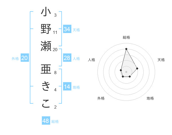 小野瀬 亜きこさんの総格は48画の4点