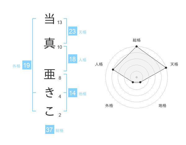 当真 亜きこさんを姓名の画数から五運を鑑定