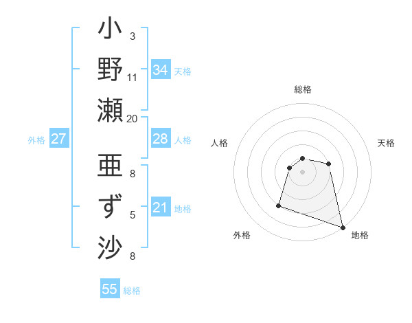 小野瀬 亜ず沙さんを姓名の画数から五運を鑑定