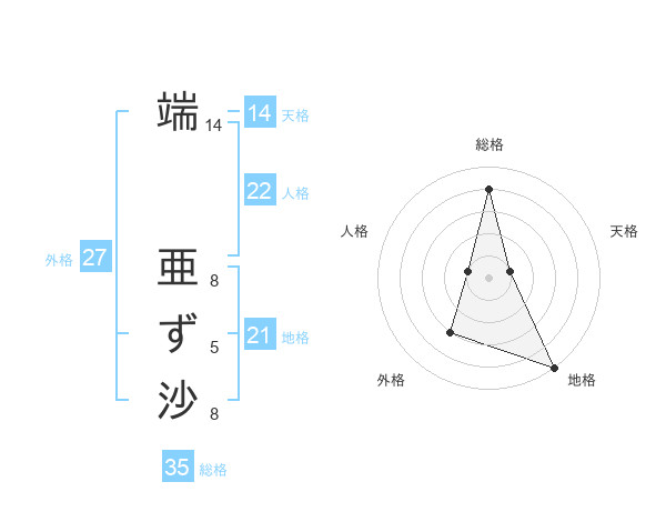 端 亜ず沙さんの総格は35画の4点!
