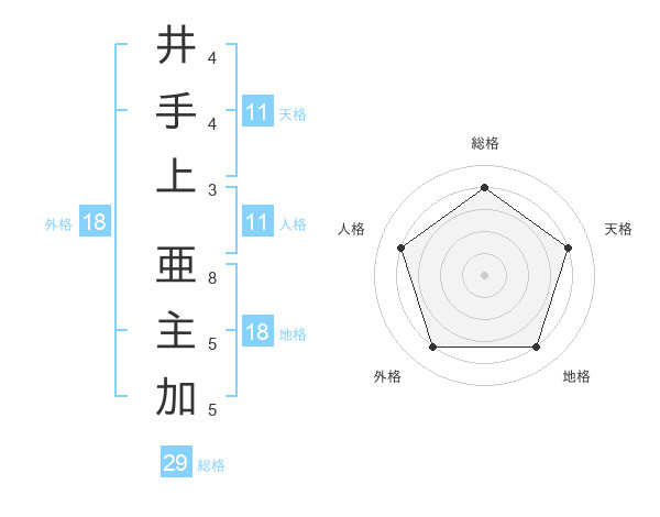 井手上 亜主加さんを姓名の画数から五運を鑑定