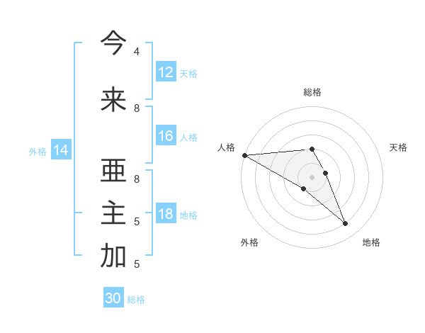 今来 亜主加さんの総格は30画の2点!