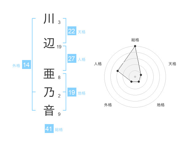 川辺 亜乃音さんを姓名の画数から五運を鑑定