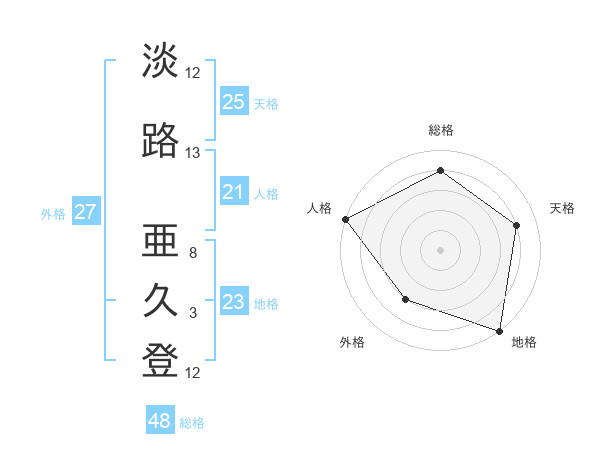 淡路 亜久登さんを姓名の画数から五運を鑑定