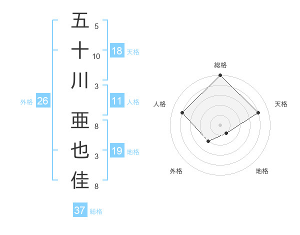 五十川 亜也佳さんを姓名の画数から五運を鑑定