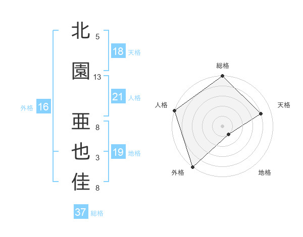 北園 亜也佳さんを姓名の画数から五運を鑑定