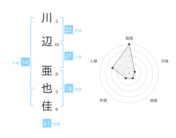 川辺 亜也佳さんの総格は41画の5点!