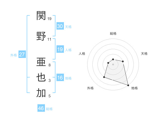 関野 亜也加さんの天格は30画の2点!