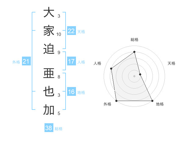 大家迫 亜也加さんを姓名の画数から五運を鑑定