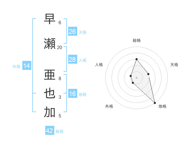 早瀬 亜也加さんの天格は26画の2点!