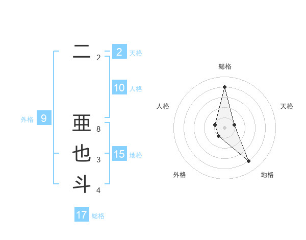 二 亜也斗さんの総格は17画の4点!