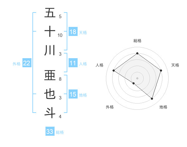 五十川 亜也斗さんの総格は33画の4点!