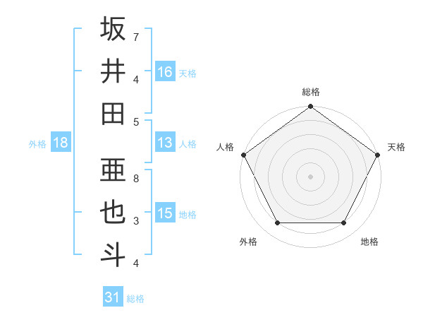 坂井田 亜也斗さんを姓名の画数から五運を鑑定