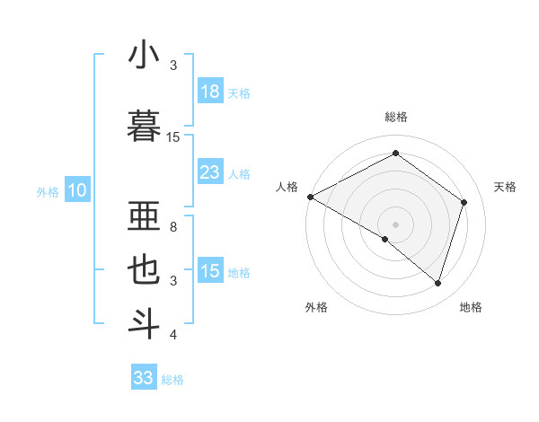 小暮 亜也斗さんの天格は18画の4点!