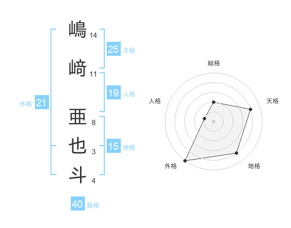 嶋﨑 亜也斗さんの外格は21画の5点!
