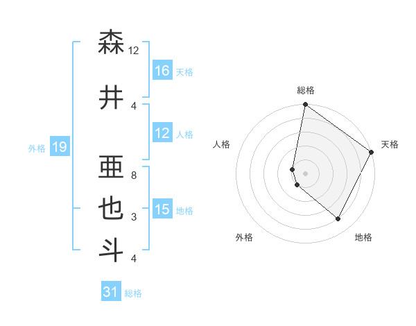 森井 亜也斗さんの天格は16画の5点!