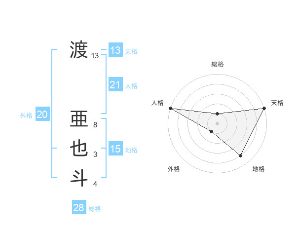 渡 亜也斗さんを姓名の画数から五運を鑑定