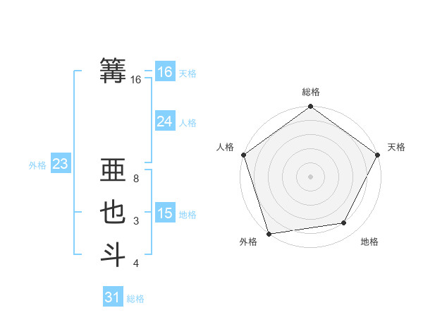 篝 亜也斗さんを姓名の画数から五運を鑑定