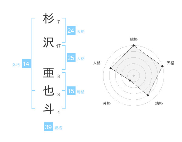 杉沢 亜也斗さんの天格は24画の5点!