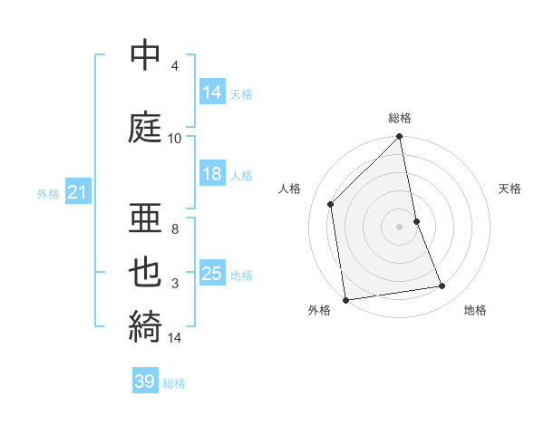 中庭 亜也綺さんを姓名の画数から五運を鑑定