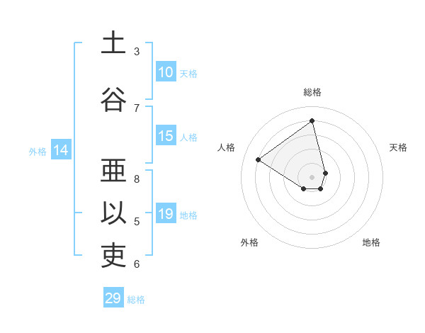 土谷 亜以吏さんを姓名の画数から五運を鑑定