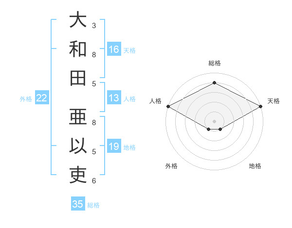 大和田 亜以吏さんを姓名の画数から五運を鑑定